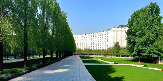 | Растительность | Четко сформированные аллеи, аккуратно подстриженные кустарники |