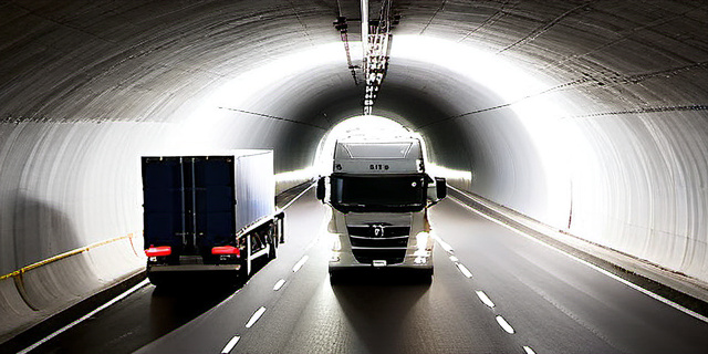В электрифицированных туннелях грузовые машины заряжаются во время движения и на специальных остановках.